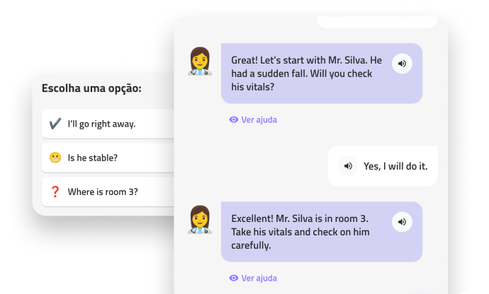 Acompanhe cenários em conversas contextualizadas e decida a resposta mais  apropriada.